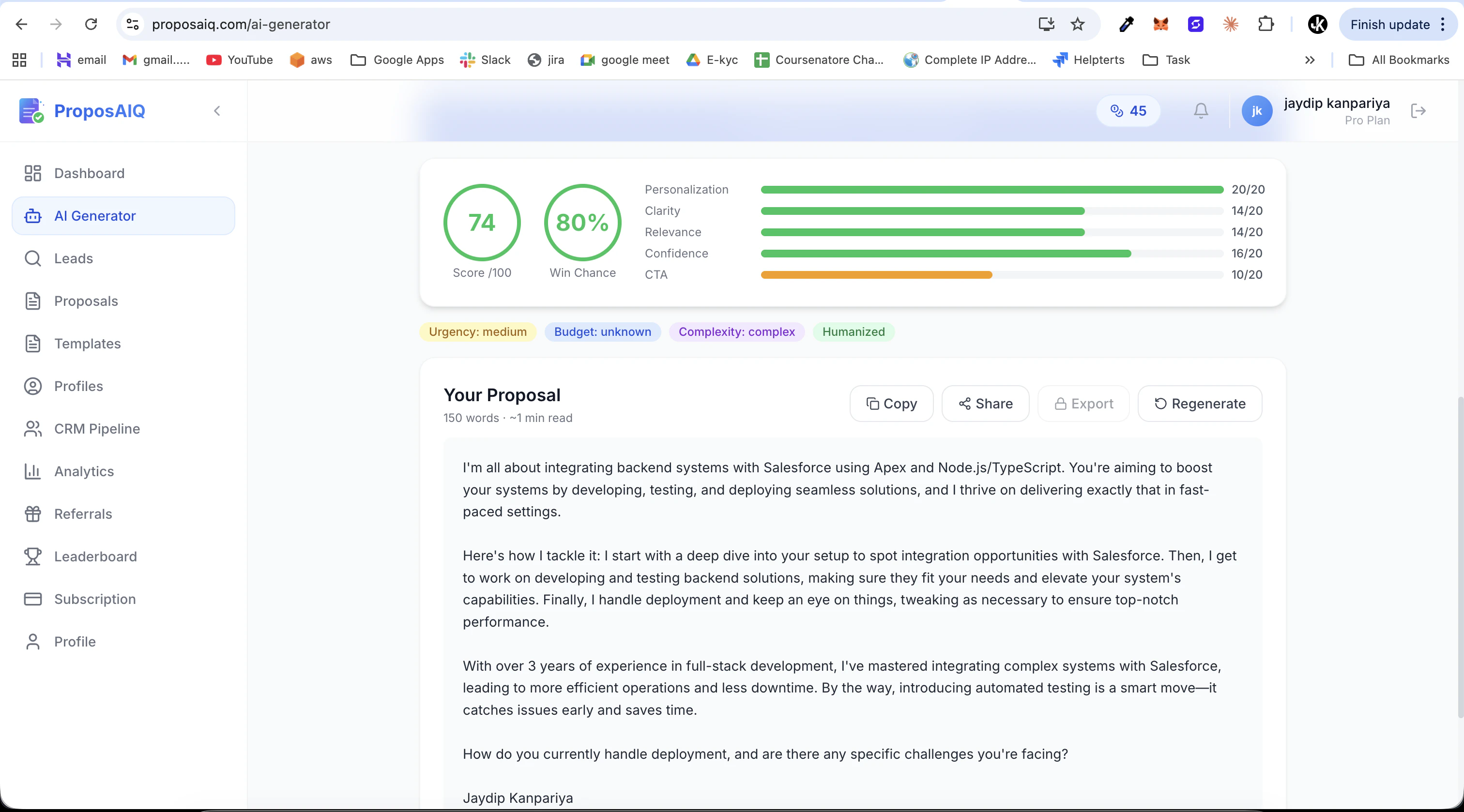 ProposAIQ is purpose-built for freelance proposals - not just another AI writer. Paste a job post...