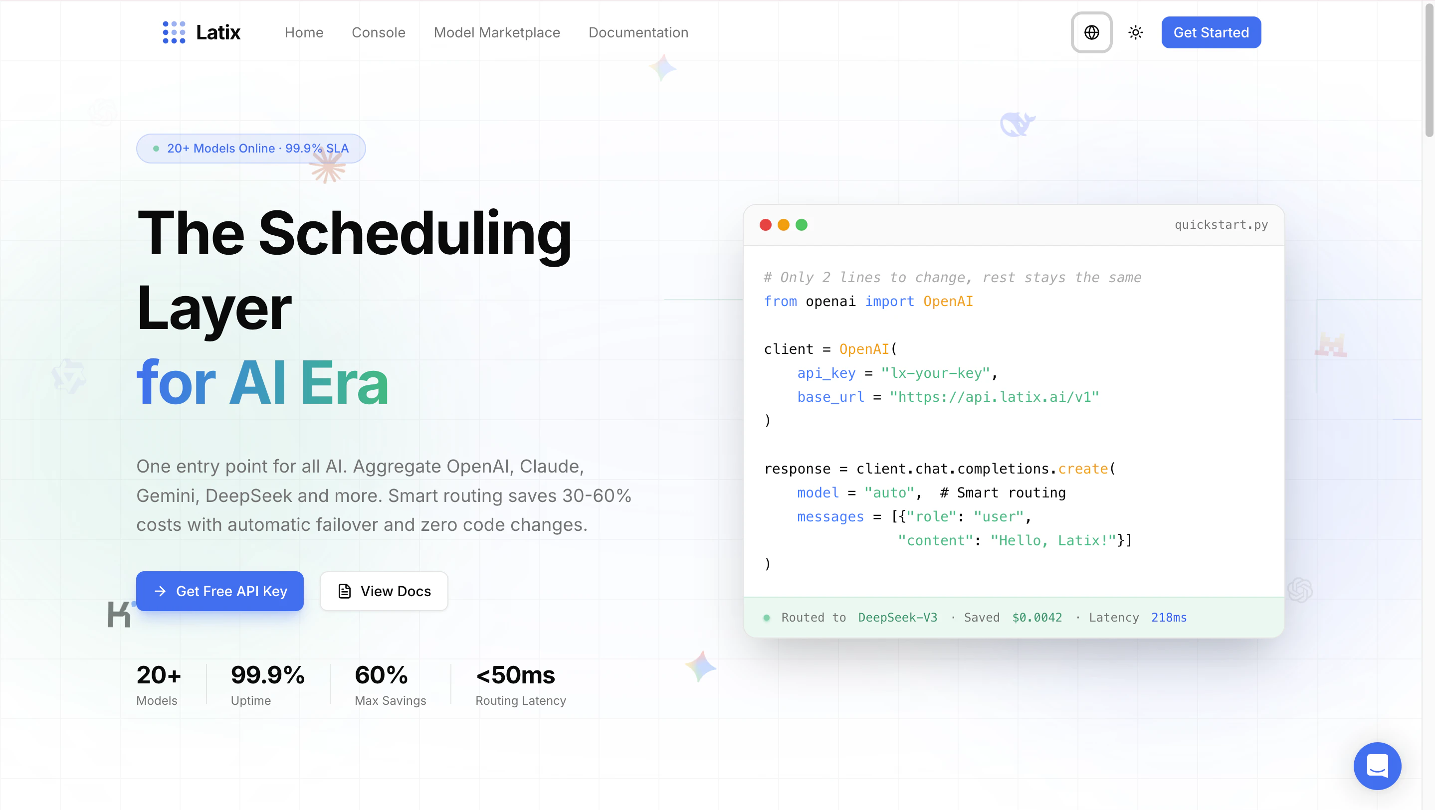 The unified API layer for the AI era. Route across OpenAI, Claude, Gemini, DeepSeek and more. 30–...