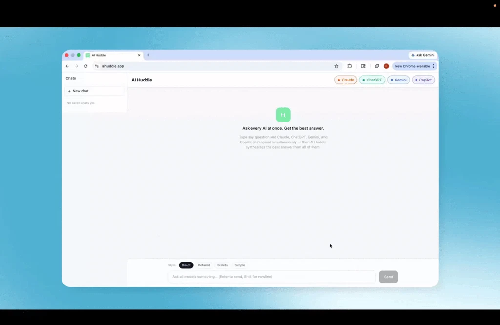 Most people pick one AI and just hope it's right. AI Huddle sends your question to Claude, ChatGP...