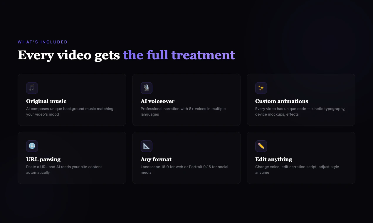 Paste a URL → get a promo video with AI narration and music