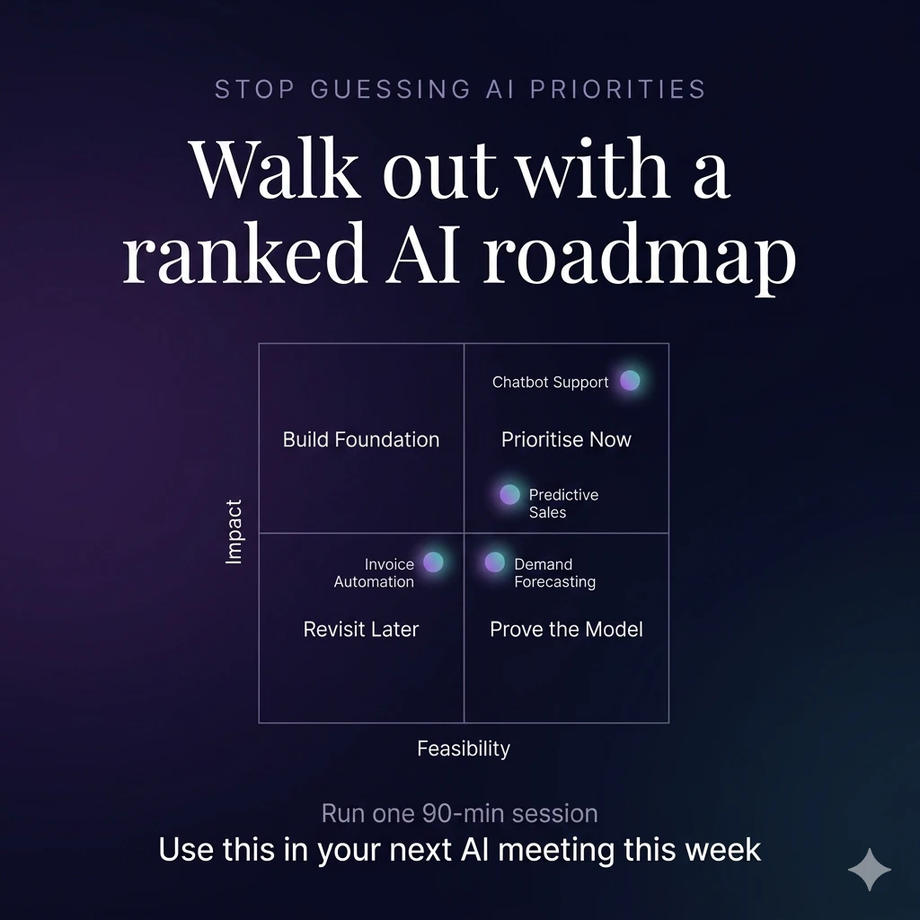 Rank your AI use cases in 90 minutes. Board-ready output.