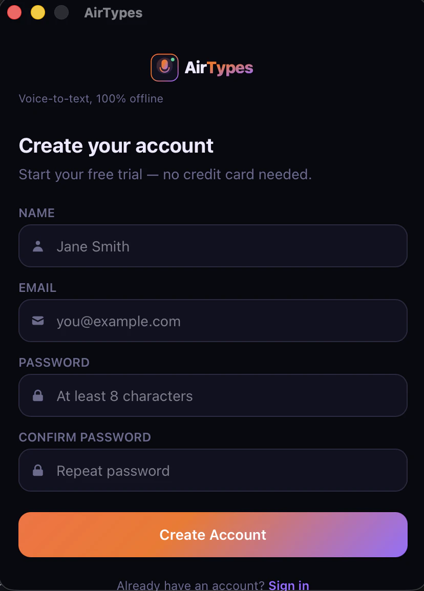 AirTypes is a 100% offline voice-to-text app for Linux & macOS — speak naturally, release the hot...