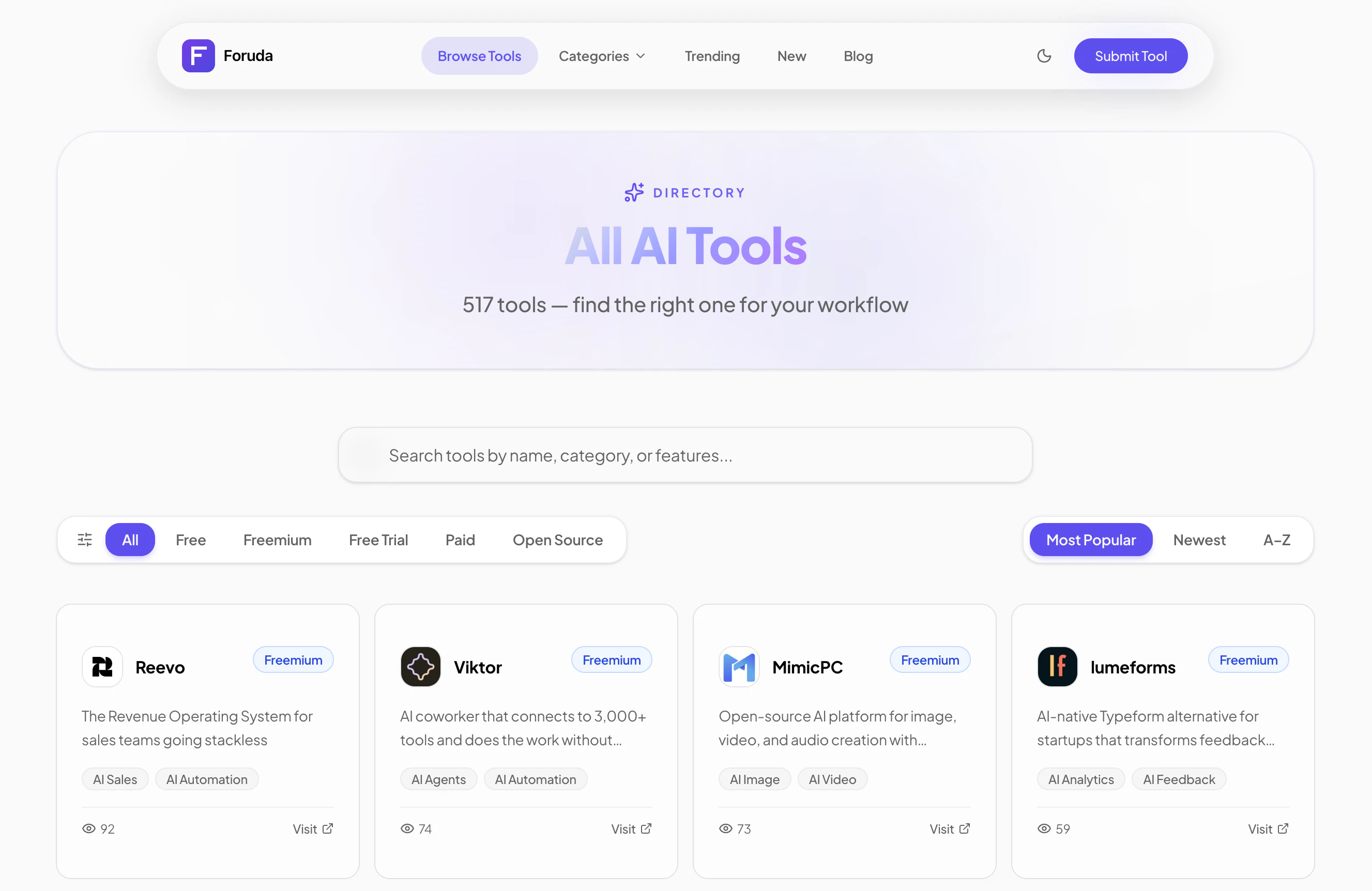 Foruda.tools is a curated directory of AI tools, helping users discover, compare, and select veri...
