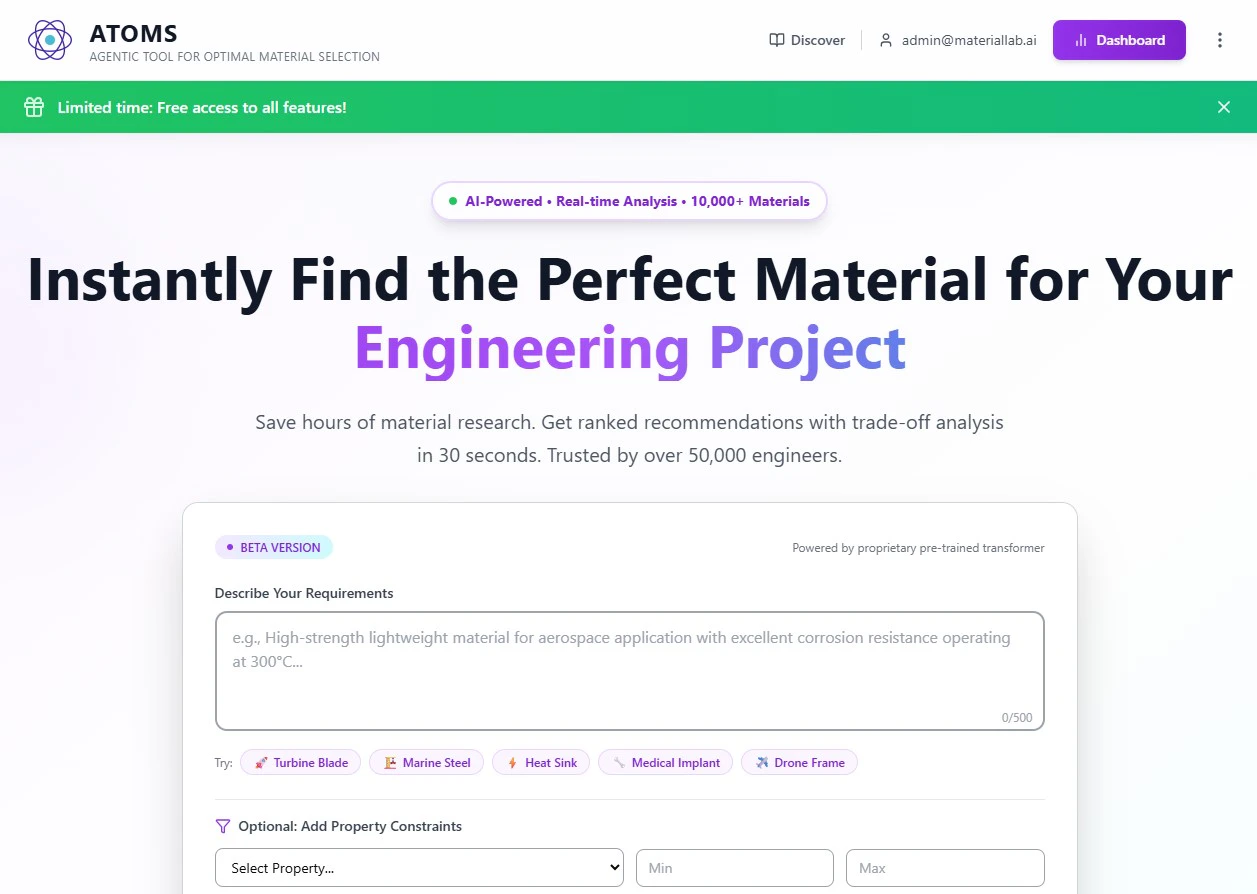 Instantly Find the Perfect Material for Your Engineering Project Save hours of material research....