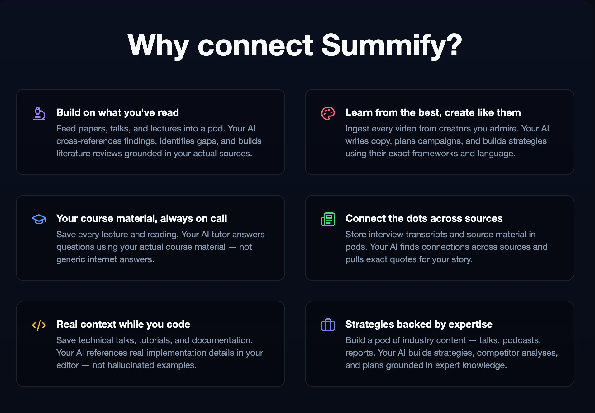 Summify turns long-form content — YouTube, podcasts, interviews, PDFs, articles & voice notes int...