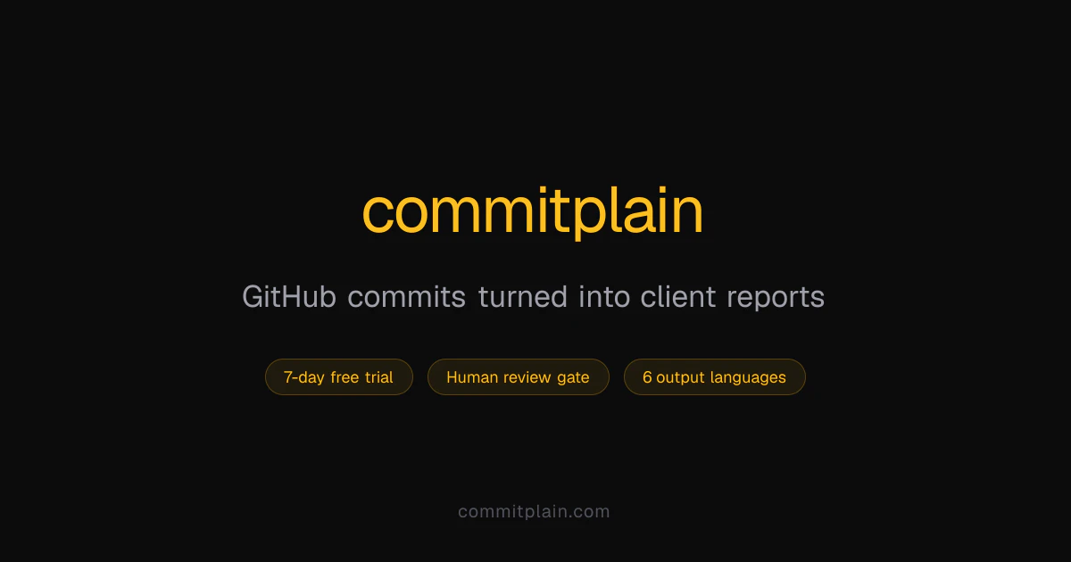 Stop manual reporting. commitplain turns your technical GitHub activity into professional, execut...