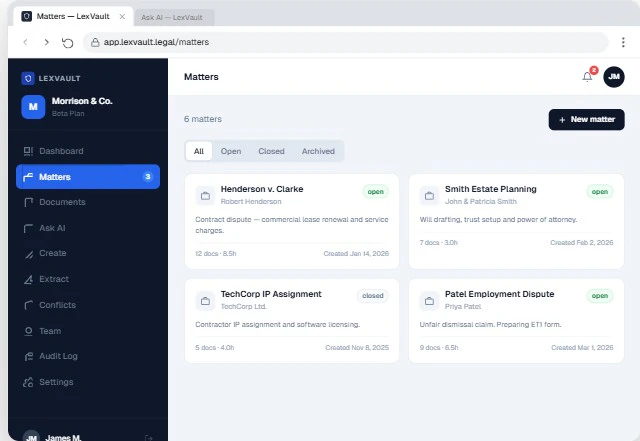 LexVault lets small law firms upload their documents archive and ask questions in plain English —...