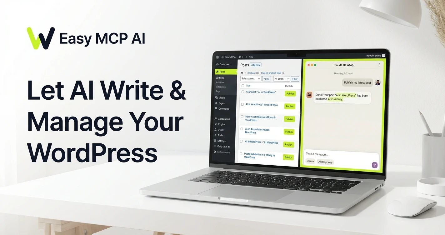 Easy MCP AI turns your WordPress site into an MCP server. Connect any AI assistant — Claude, Manu...