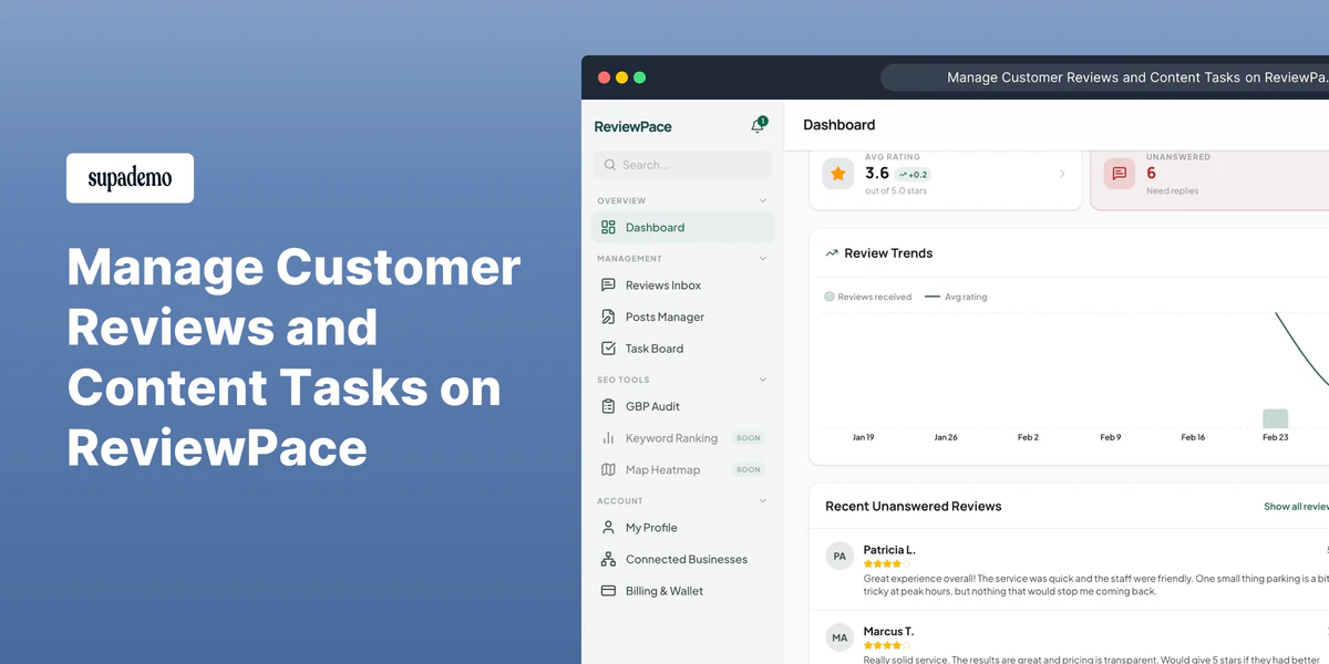 Most reputation tools are built for agencies. ReviewPace is for the independent business owner wh...