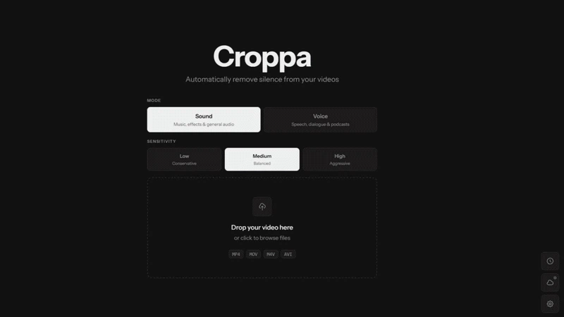 Croppa automatically detects and removes every silent pause from your videos. Stop scrubbing time...