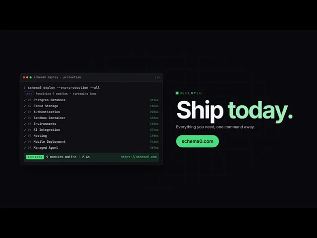 Schema0 is the complete workspace needed to build full stack application from securely using agen...