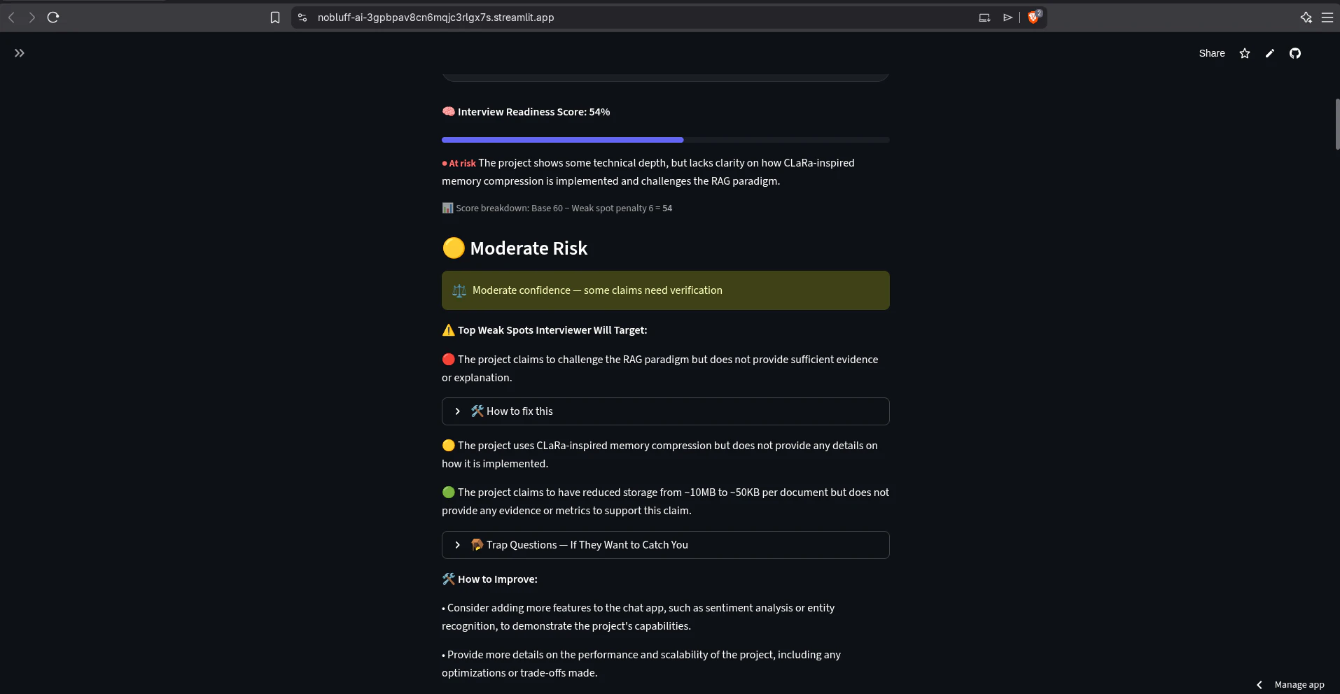 NoBluff AI turns your resume into structured, interview-ready answers. Instead of vague or generi...