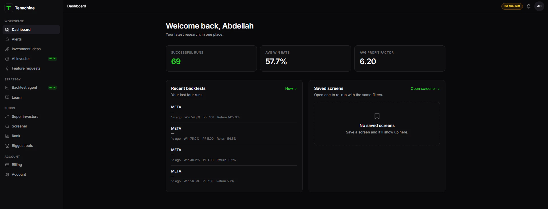 Describe a swing trading strategy like you are texting a friend and Tenachine will backtest it in...