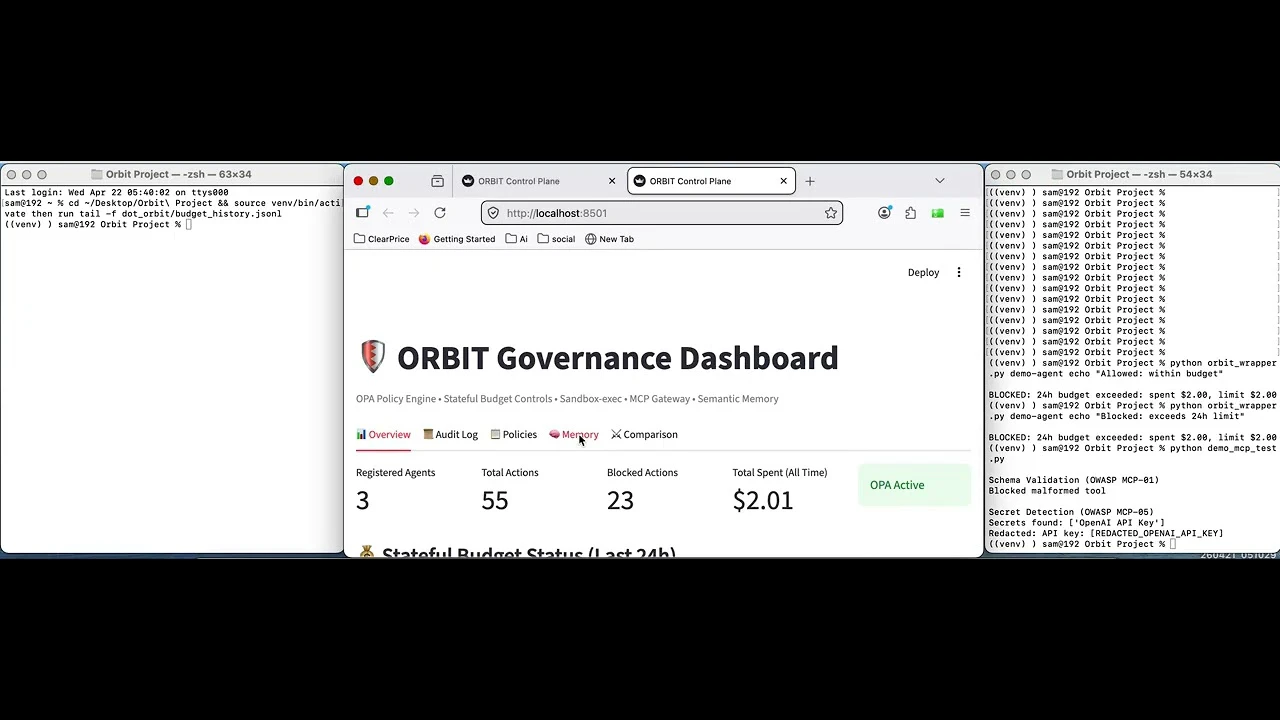 ORBIT is an open-source, self-hosted platform that governs AI agents. 🛡️ Stateful budgets: 24h/7d...