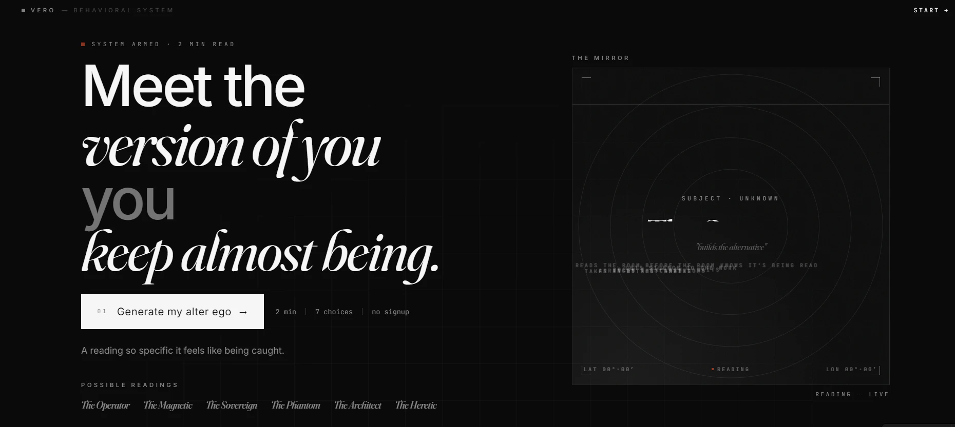 VERO is not a personality test. 7 dilemmas. 2 minutes. A behavioral pattern that feels uncomforta...
