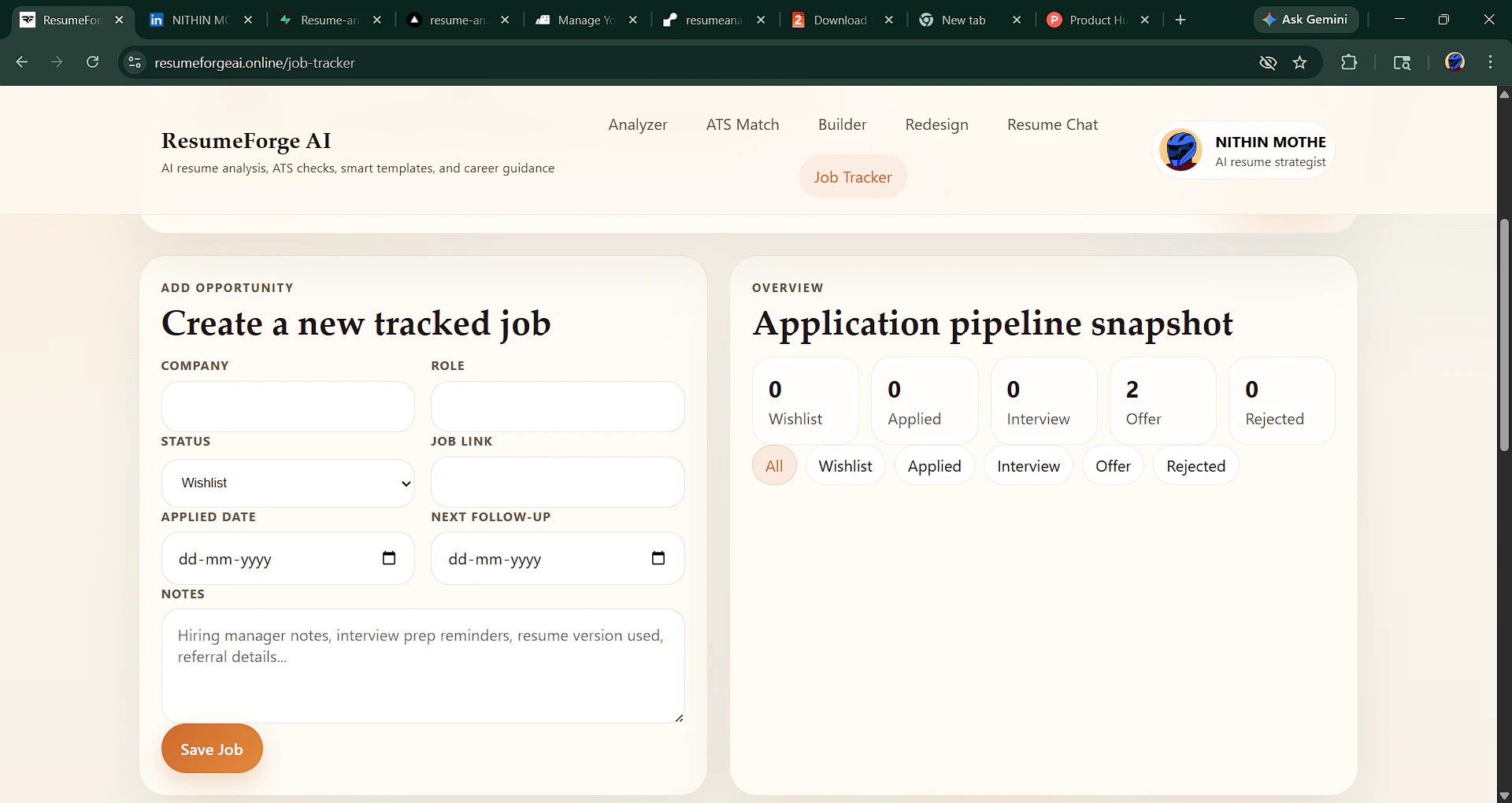 ResumeForge AI is an AI-powered resume platform.