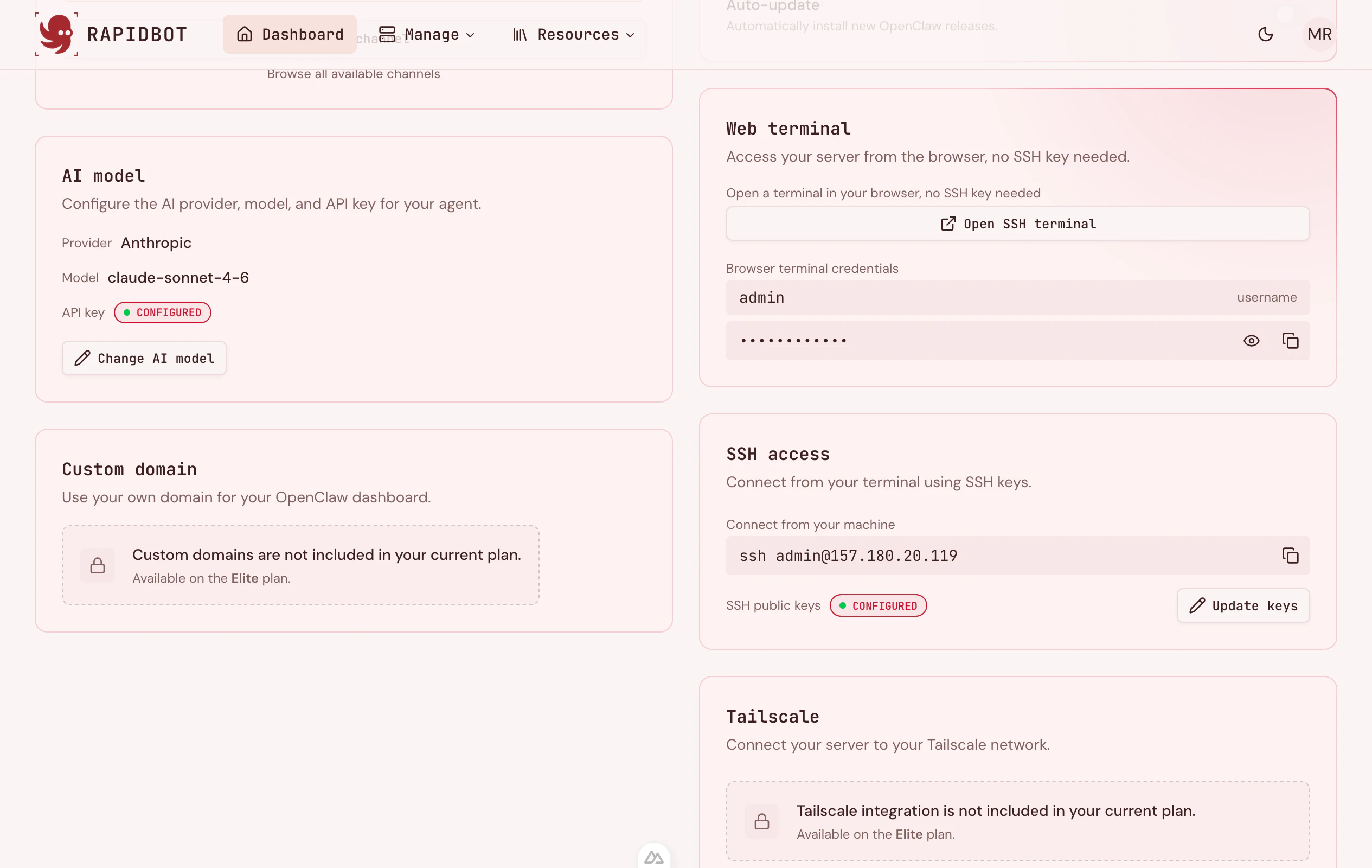 Rapidbot gives you a fully managed OpenClaw server in under 3 minutes. No Docker, no firewall rul...