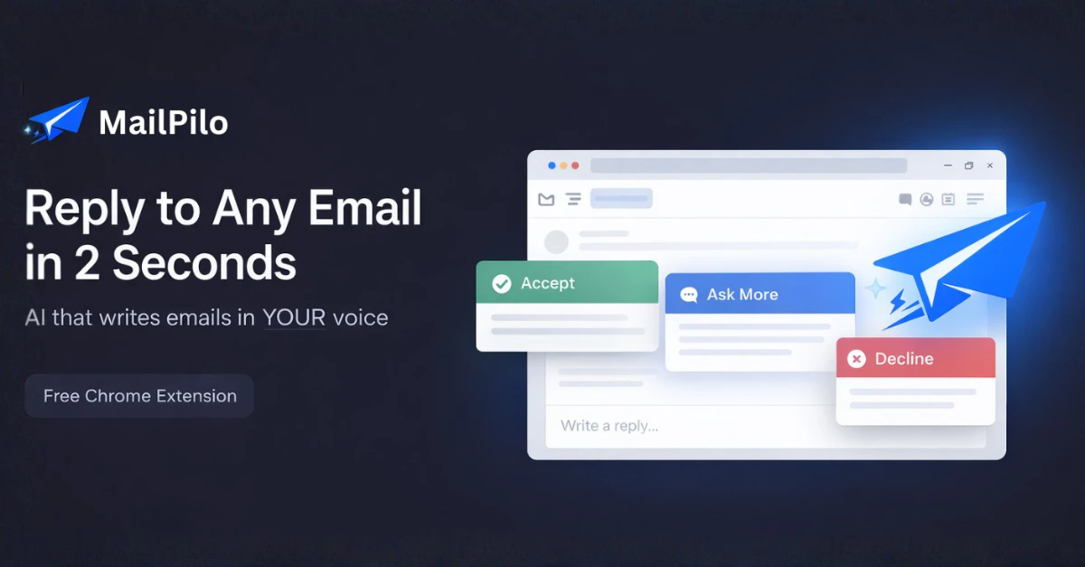 MailPilo is a Chrome extension that drafts your Gmail replies in one click. It sits right inside ...