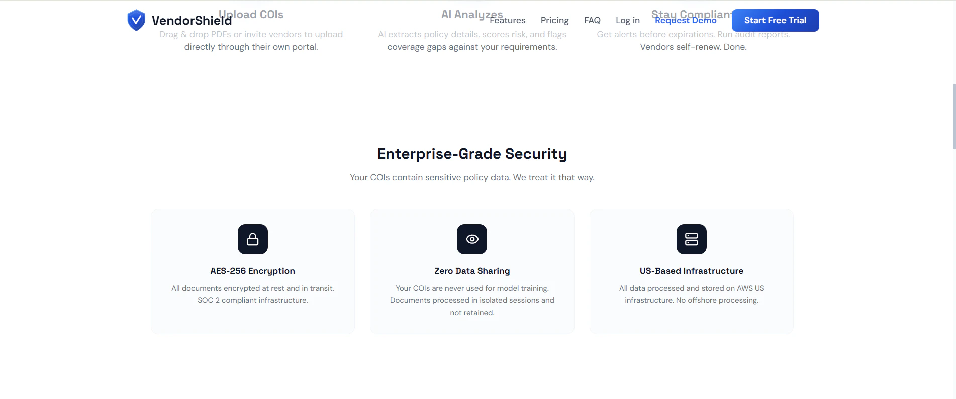 Upload certificates of insurance (COIs) and VendorShield automatically verifies coverage, flags g...