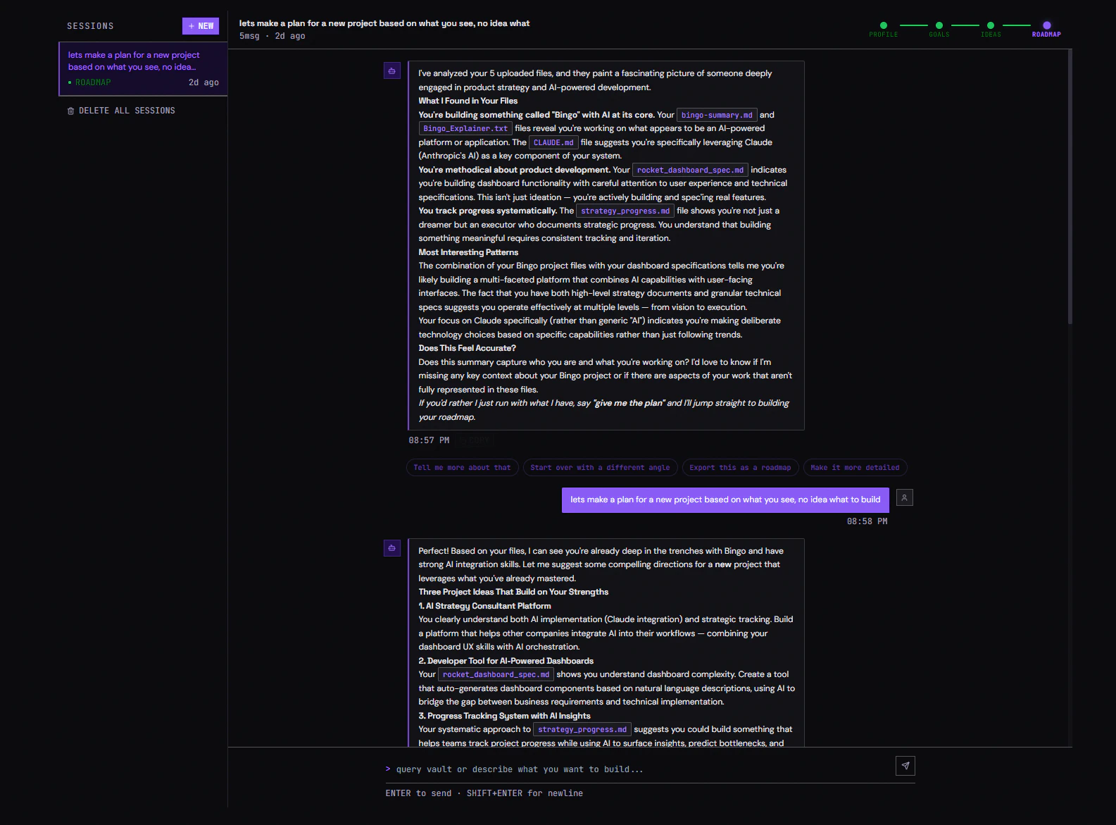 Upload any files. Get a structured roadmap from the context.