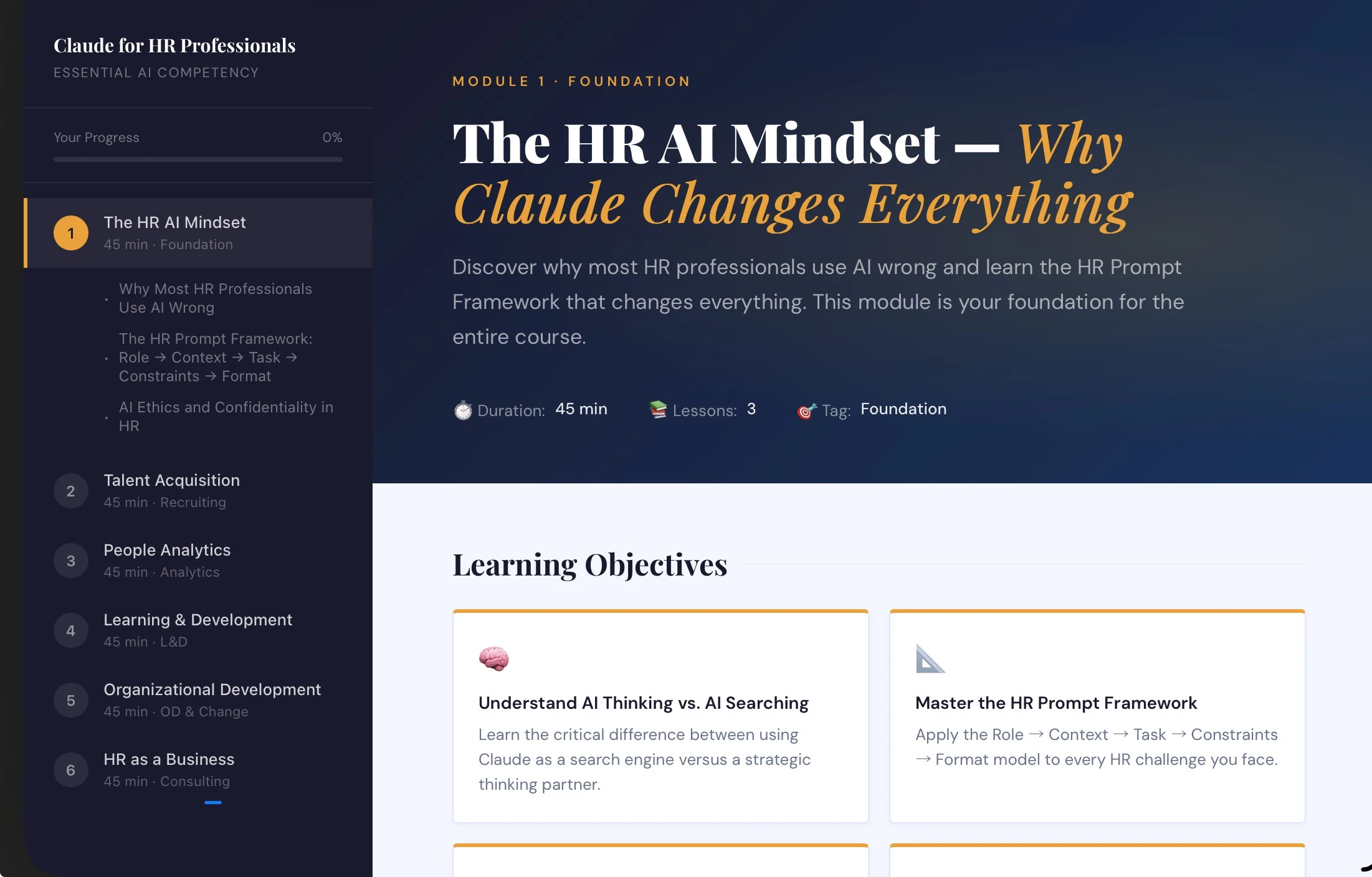 Claude for HR Professionals is a free 6-module course covering the tasks HR professionals do ever...