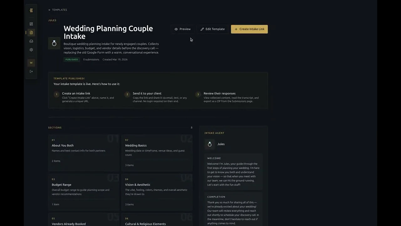 Intake is a conversational client intake platform that replaces static forms with an intelligent ...