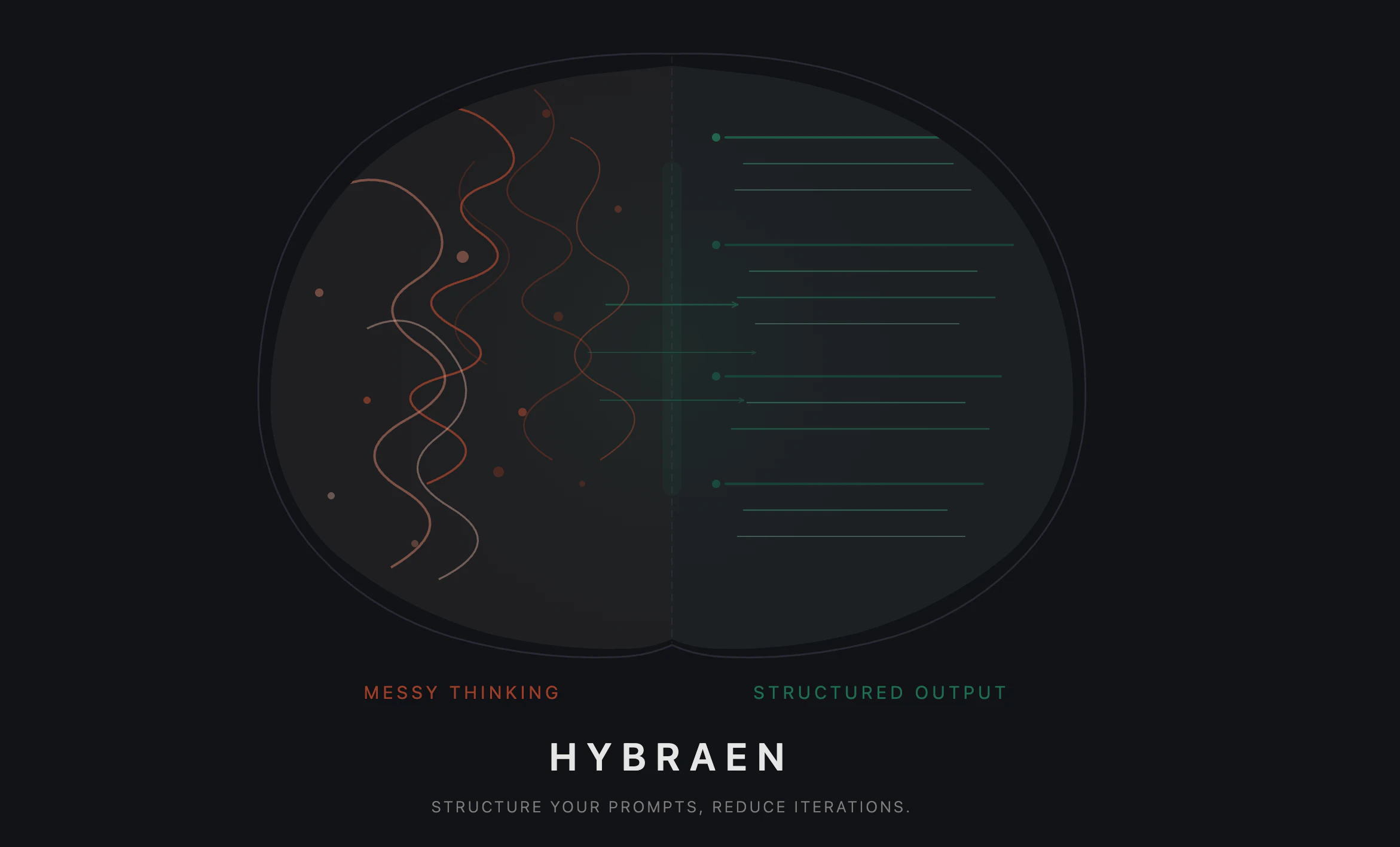 - Hybraen restructures your prompts before they hit the LLM. Paste in your messy, stream-of-consc...