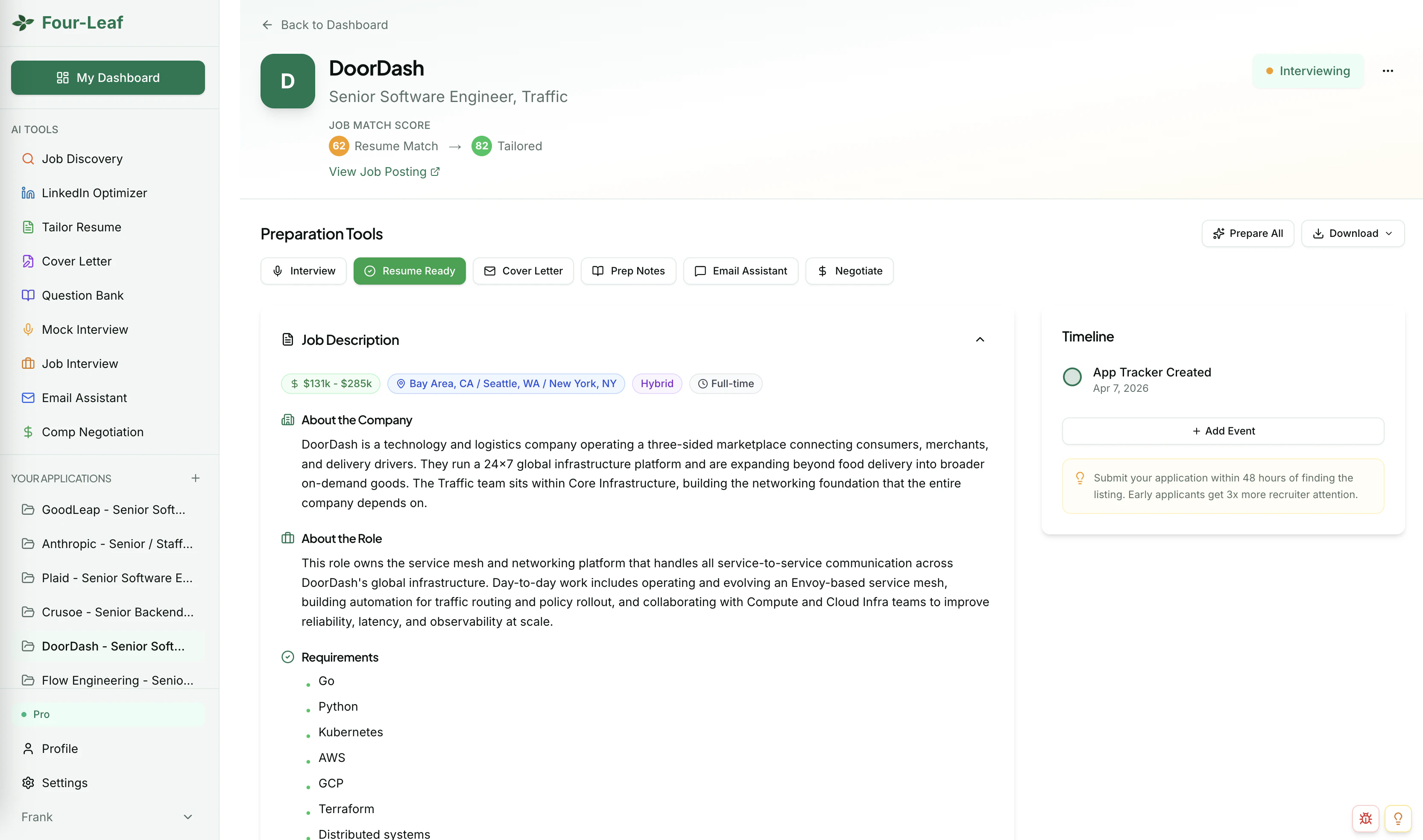 AI career prep platform with voice mock interviews, resume tailoring, cover letter generation, an...