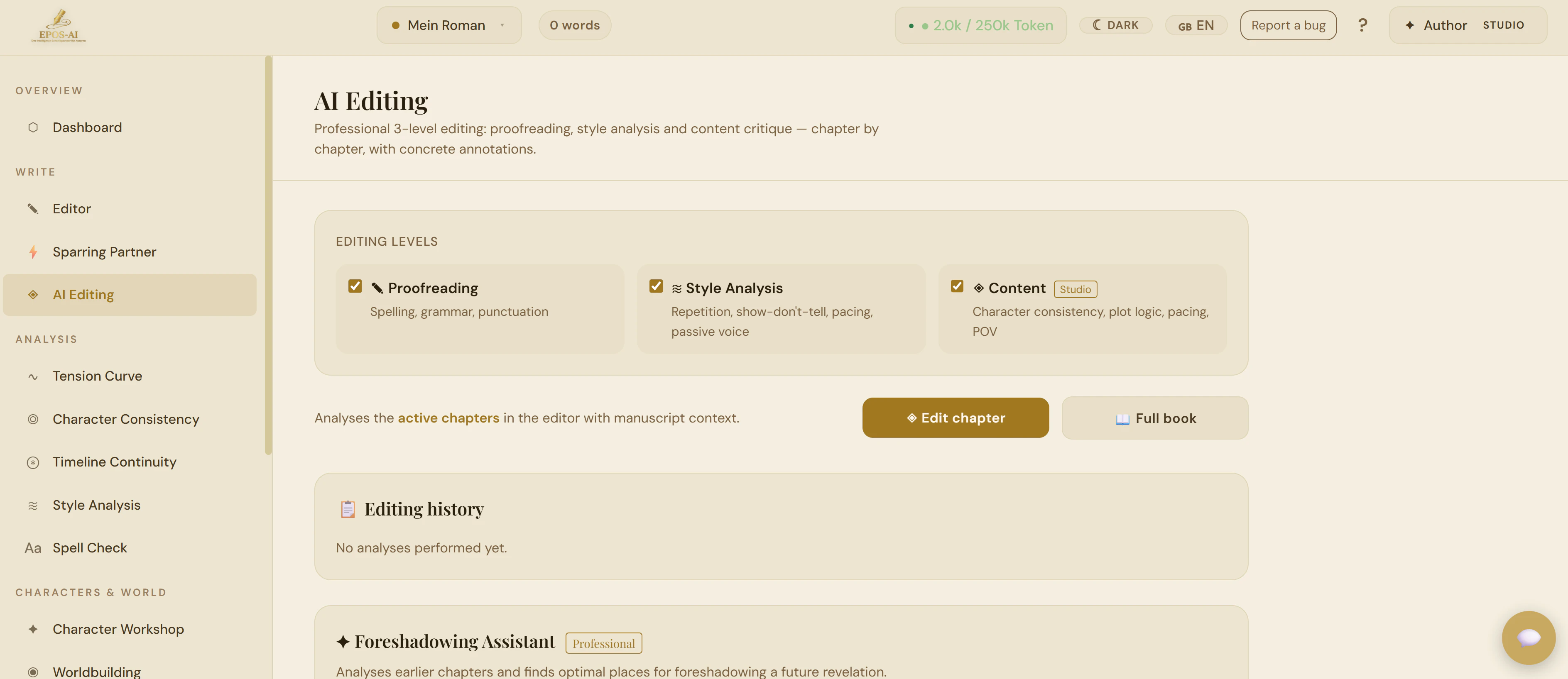 EPOS-AI — The AI Writing Studio for Fiction Authors Built for novelists, not marketers. EPOS-AI o...
