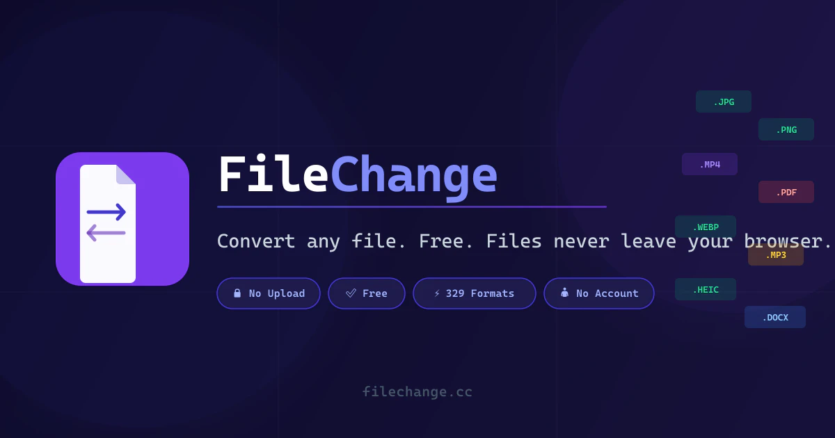 Convert images, video, audio, PDF & documents free in your browser. Files never leave your device...