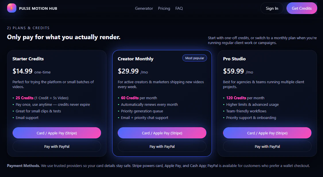PulseMotionHub is an AI-powered image-to-video platform built for creators, marketers and agencie...