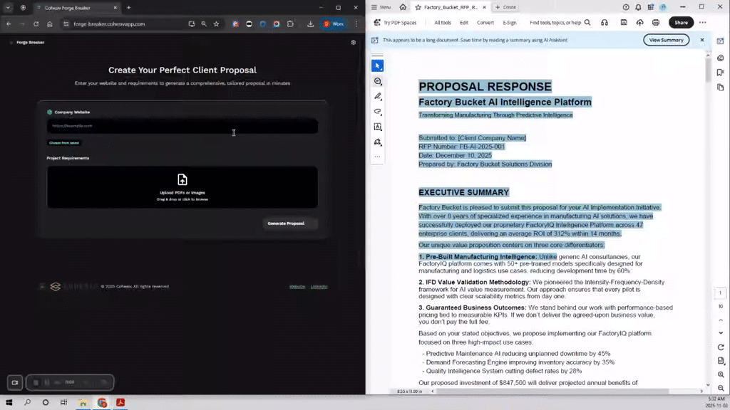 Forge Breaker は、ウェブサイトと要件から、ブランド・声・目標に合わせた完全でプロフェッショナルな提案を数分で作成するAI支援ツールです。構造化知性と生成デザインを組み合わせ、クライアントのブリーフをテンプレートに頼らず、個別に最適化された提案へと変換します。提案ページには AI 生成ビジュアルを追加でき、注目を集めて契約成立を後押しします。