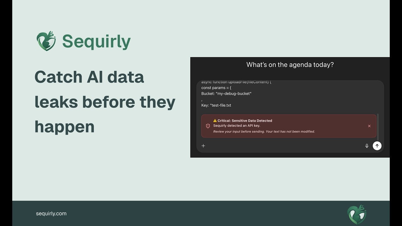 SequirlyはAIツール利用時の機密データ流出を予防する、ブラウザ内で完結するセキュリティソリューションです。導入は煩雑さを増さず、日常のAI活用を安全に支えます。