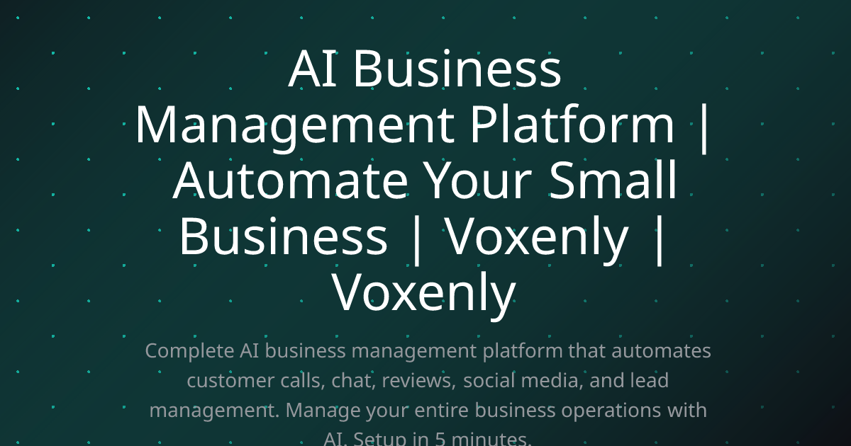 Voxenlyは、電話応対・顧客チャット・レビュー管理・SNS投稿・リード追跡・予約リマインダー・メールサポートの7つのAIエージェントで、ビジネス全体を自動化する統合プラットフォームです。自然な会話と24時間365日の対応、5分でのセットアップが特徴です。初回は50クレジットの無料プランから試せます。小規模ビジネス向けの使いやすさと手頃な料金設定が魅力です。