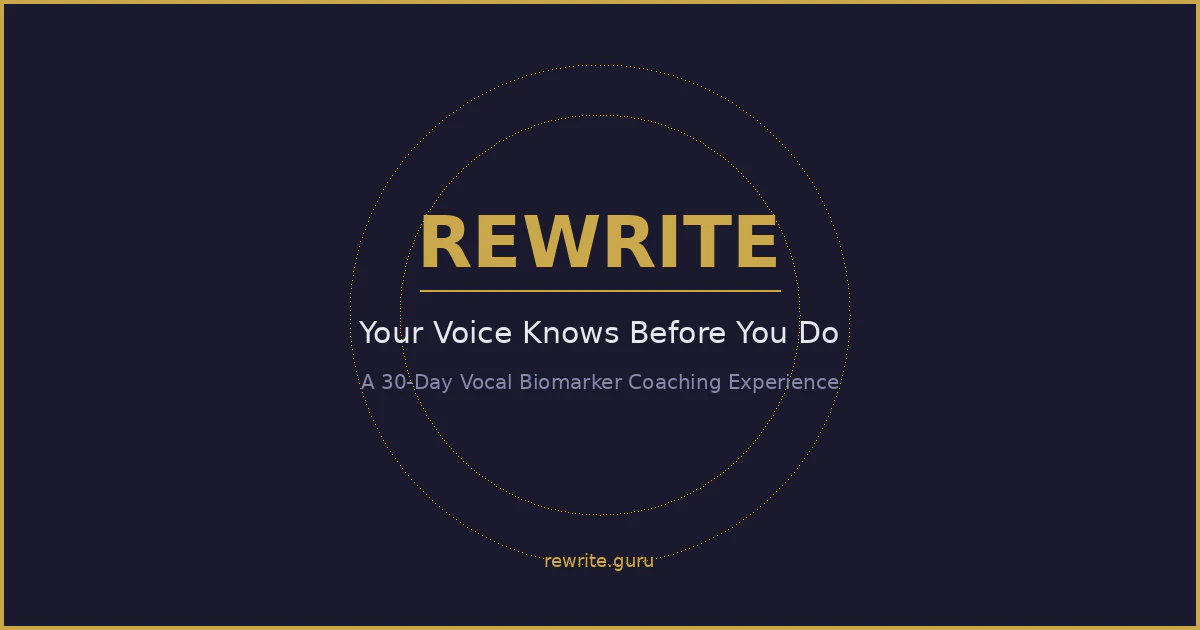 REWRITE uses vocal biomarker science to objectively measure your personal growth. 30 interactive sessions analyze 5 emotional dimensions from your voice. The coaching industry has zero measurement - until now. Sessions 1-3 free. No card. No account.