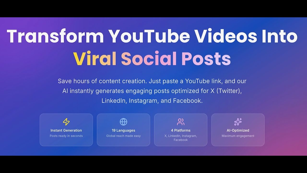 YouTube動画をソーシャルメディア投稿に変換するAIツール