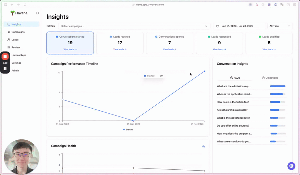 ## プロダクト概要 ハバナは、高等教育機関向けに開発されたAI学生リクルーターです。電話やメールを通じて、教育機関がより多くのリードを効率的に転換する手助けをします。 ## 主な特徴 -...