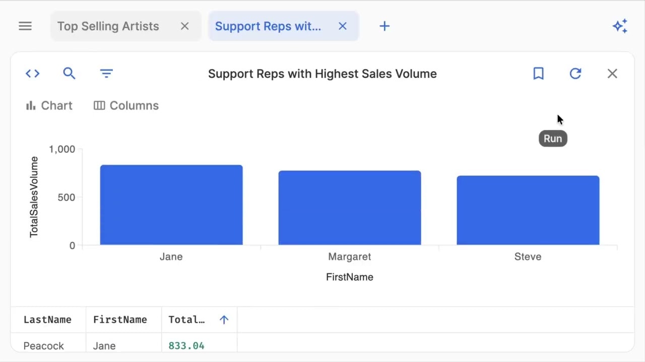 ## 概要 このプロダクトは、数秒でデータベースに特化したSQLクエリとチャートを取得できるツールです。 ## 主な機能 - 自然言語によるデータの問い合わせ - Postgres、MySQL...