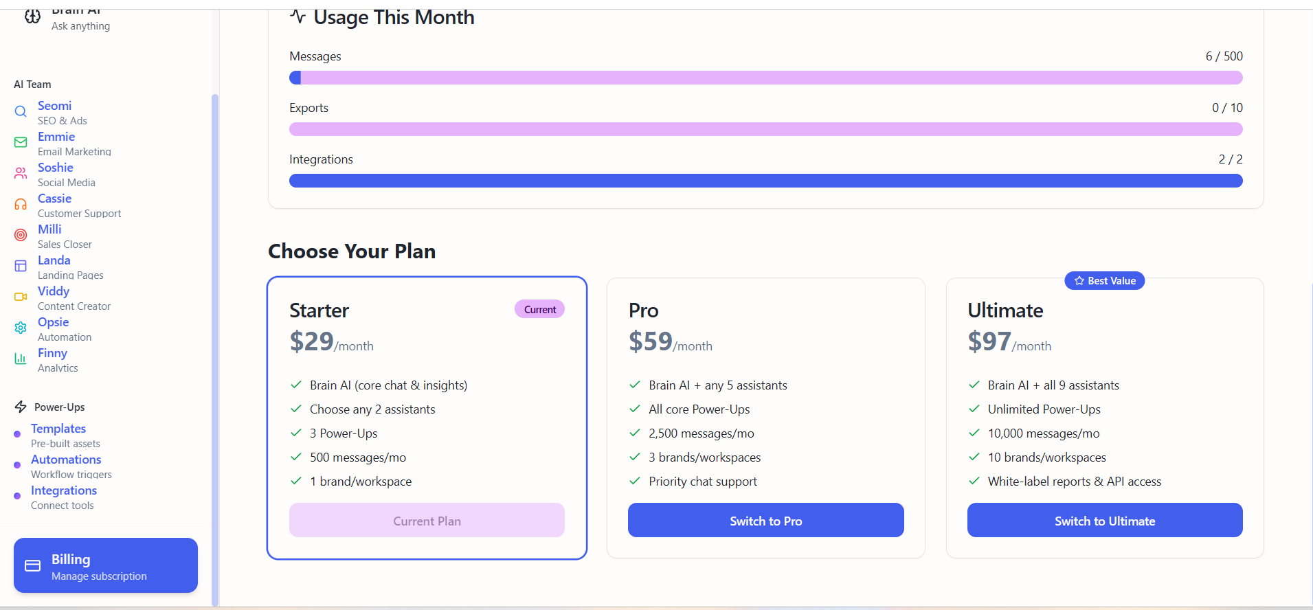 ## 概要 AI Teamは、複数のツールを統合し、ビジネス成長を支えるAIアシスタントを提供します。 ## 特徴 - **9人の専門家**: Brain AIを活用したアシスタントが、マーケ...