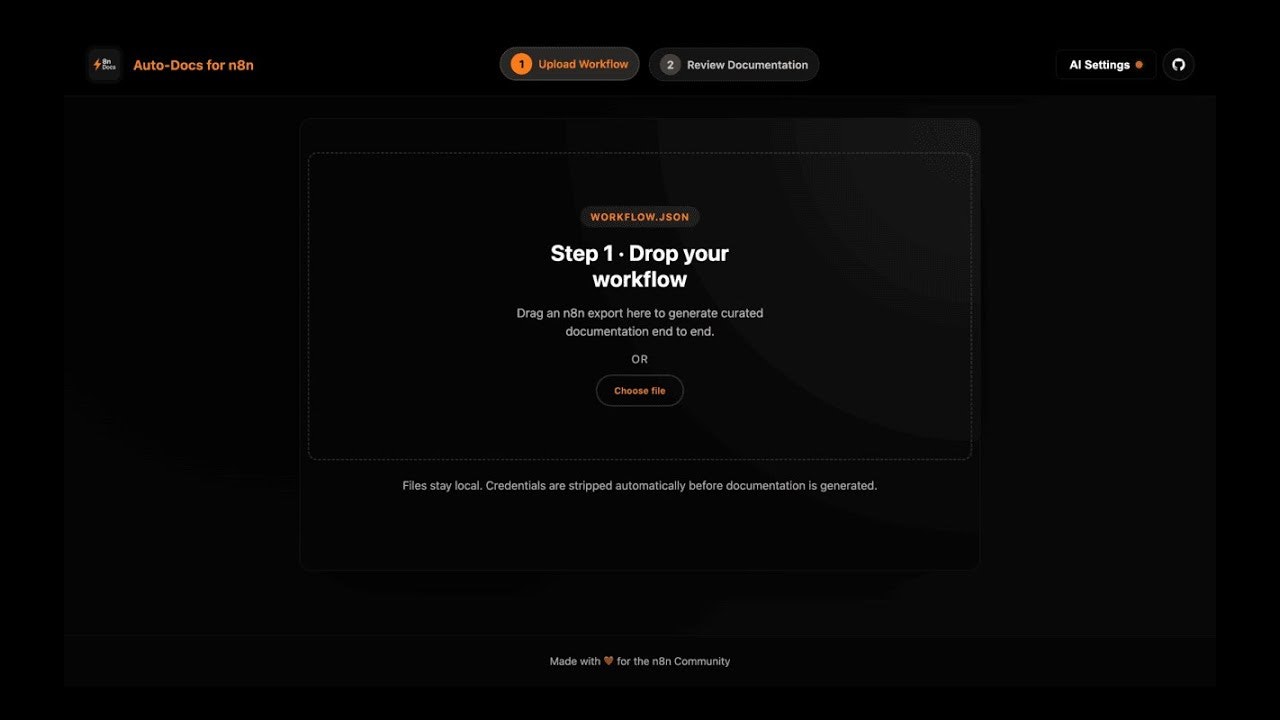 ## 概要 n8n ワークフローのドキュメント作成を自動化するツール。ワークフロー JSON をアップロードするだけで、ノード・トリガ・データフローの説明を自動で整然としたドキュメントにします。...
