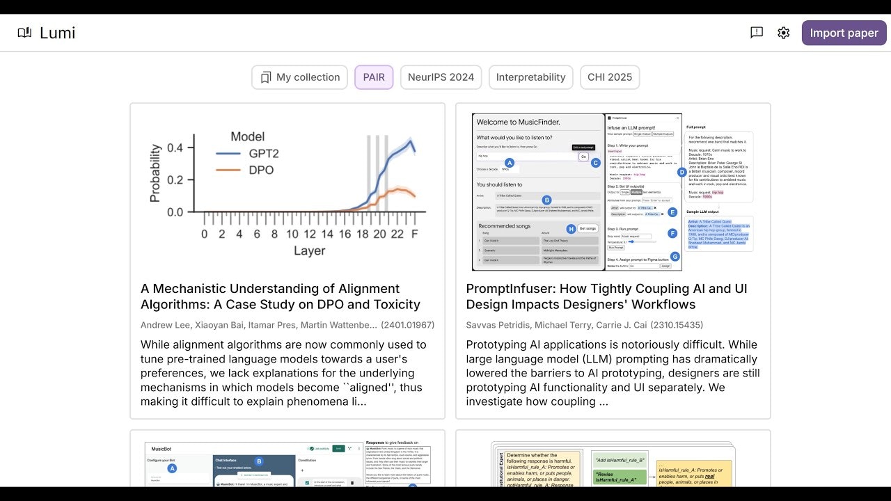 Lumiは、論文を読む体験をAIで補助するGoogle PAIRの実験です。原文上に軽量AIレイヤーを重ね、主要ポイントをハイライト、参照をクリック可能にします。選択したテキストや画像へ文脈質問...