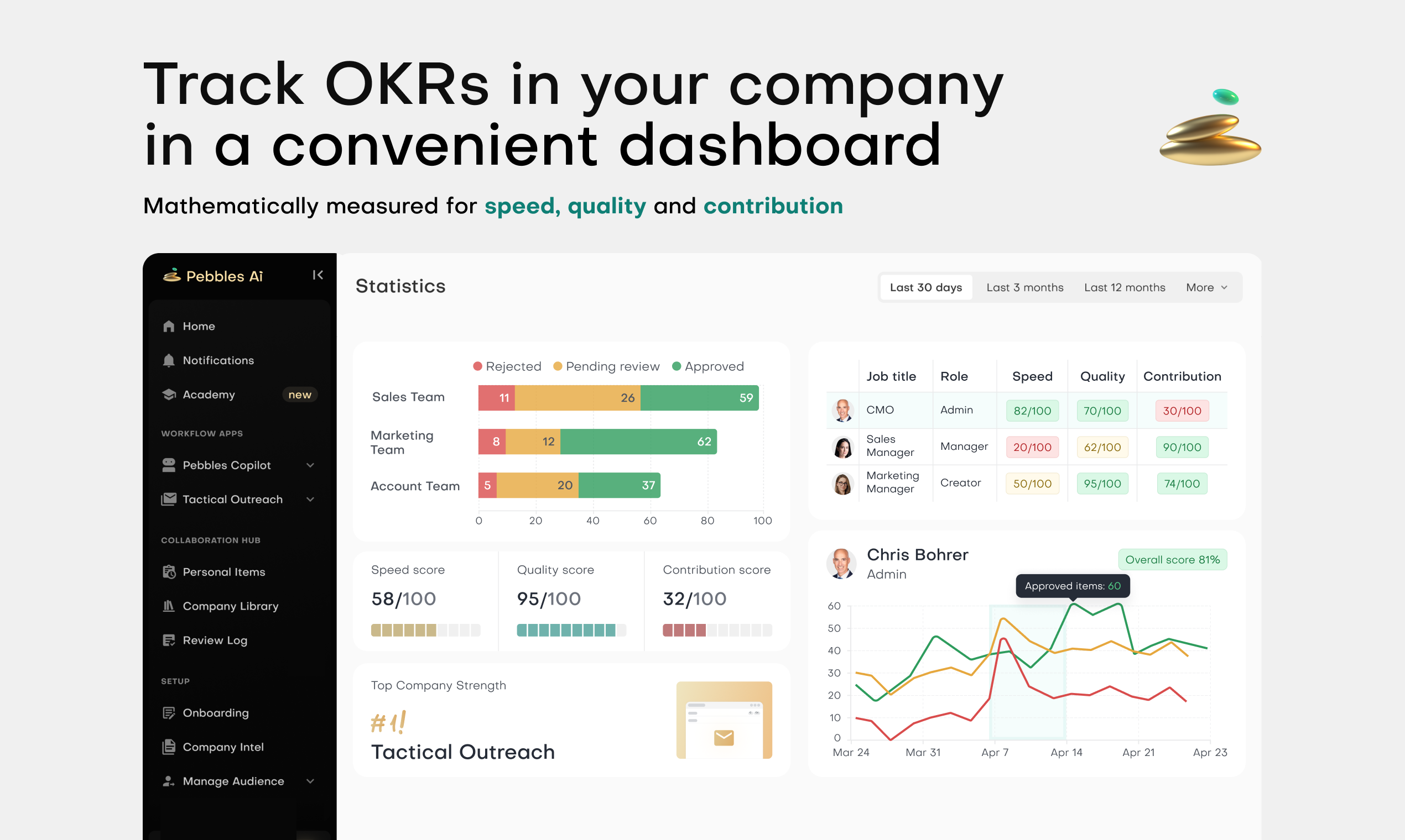 Pebbles Aiは、GTMOS™️とニューロシンボリックAIを核にした世界初のGo-to-Market OS。断片化したツールと仮説ベースの施策、採用サイクルの課題を統合ワークスペースで解消...