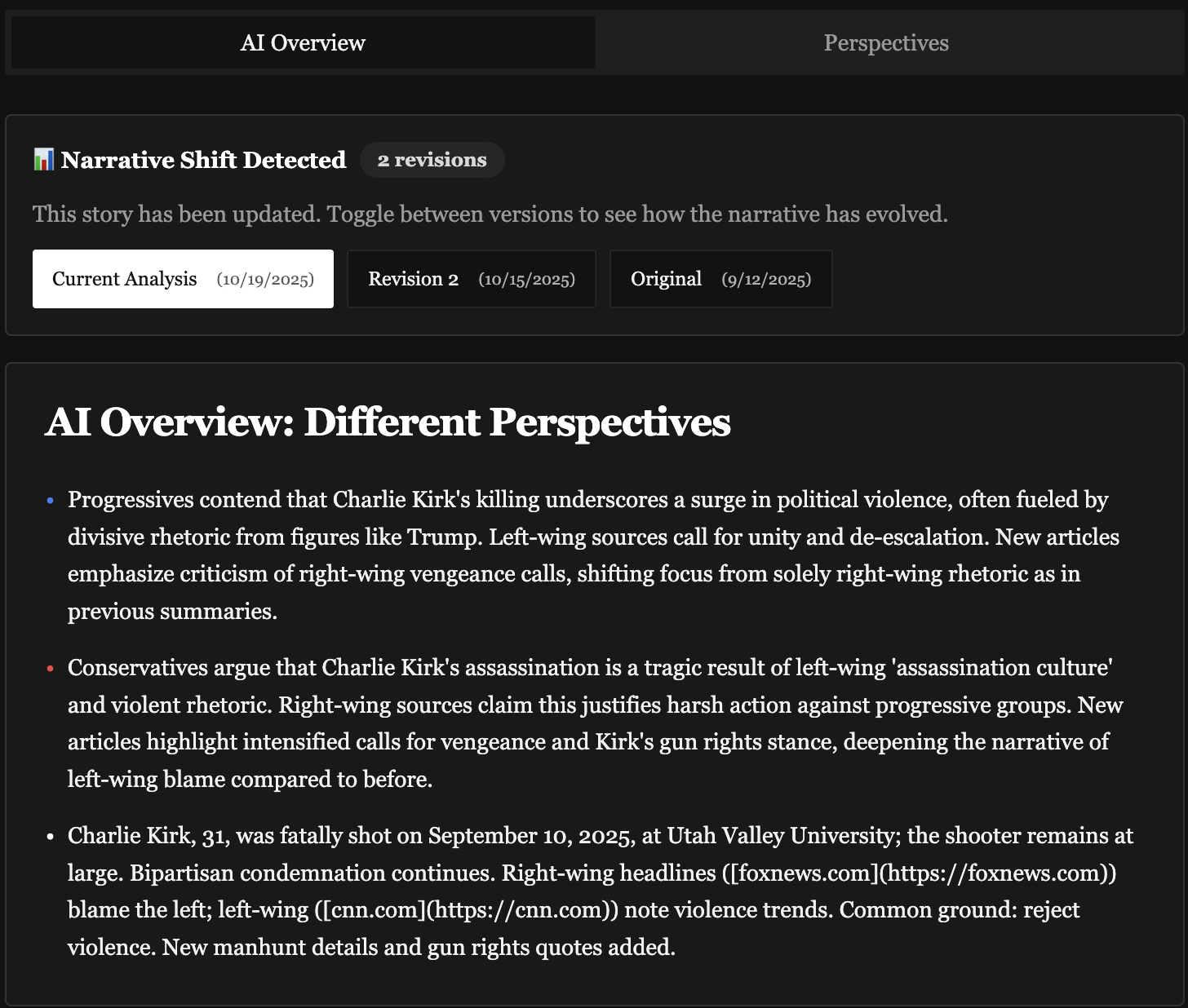## プロダクト概要 真実の民主化を掲げ、同じ話題が政治的スペクトラムでどのように報道されるかを比較・検証します。偏見・語りの変化・省略・嘘などを可視化し、従来メディアの情報操作を浮き彫りにしま...
