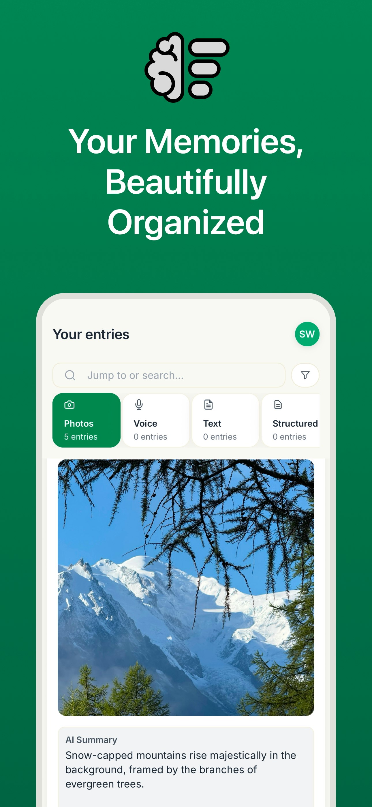 ## 概要 - AI搭載の記憶アシスタントで、音声または自然な入力をAIが自動処理 - 手動タグ付けや整理が不要、気分追跡とトピックの洞察を自動提供 - Moments機能で過去の同日エントリを...