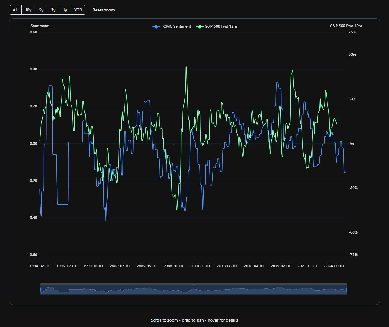 FRBのトーンがS&P 500に与える影響を追跡する。