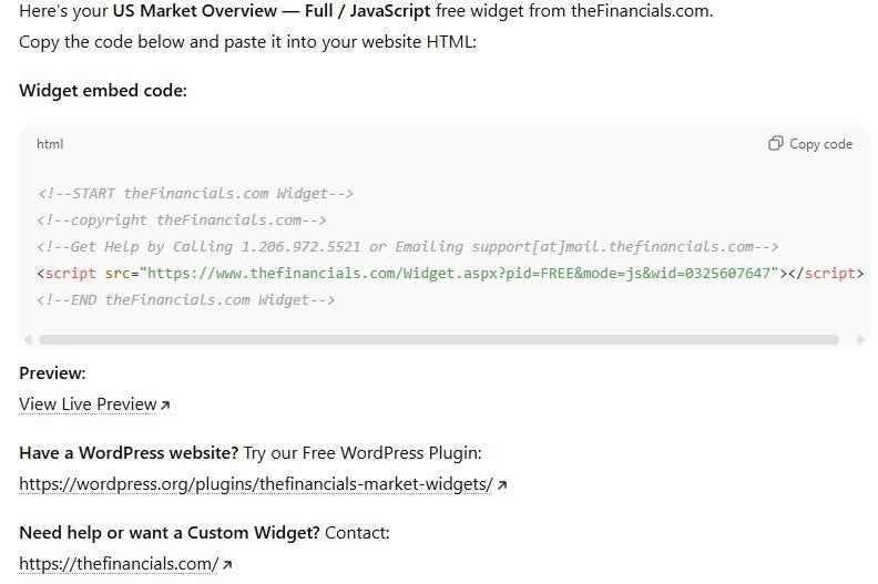 TheFinancials Market Data GPTは、自然言語でリアルタイムの金融市場データを探索し、埋め込み可能な無料ウィジェットを即座に生成するGPTです。API不要・設定不要で、U...