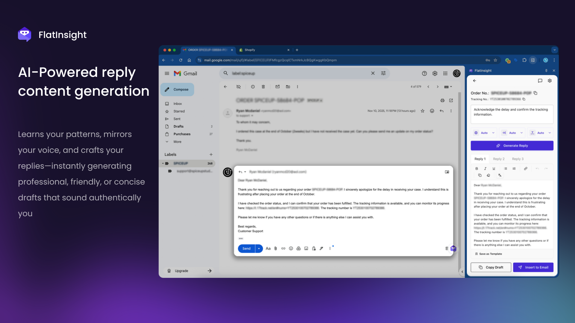 Shopify/WooCommerceのアフターセールス向けAI搭載Chrome拡張。Gmail/Outlookに直接統合され、受信トレイでデータ表示・AI返信作成・1クリック操作を提供。リアル...
