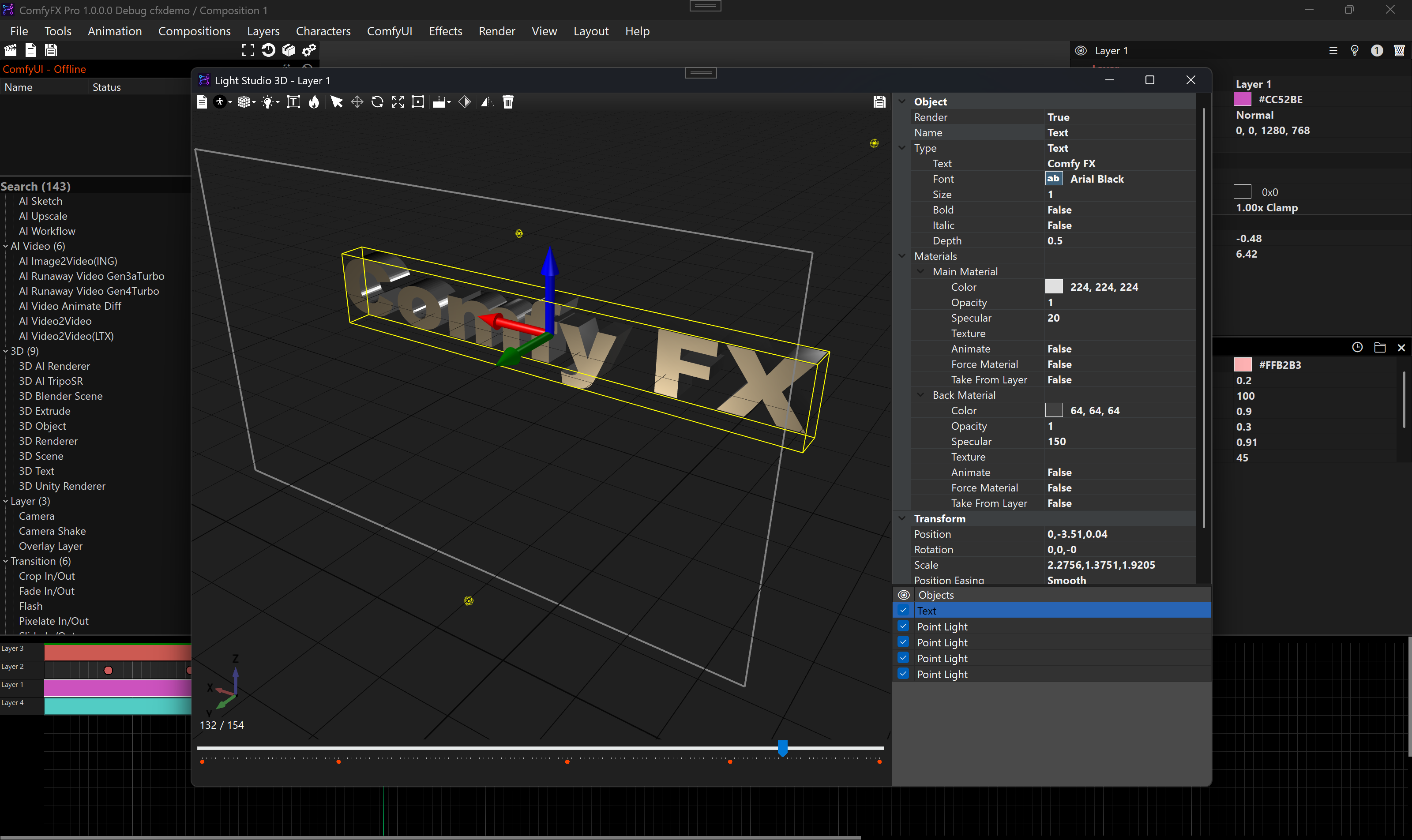 ComfyfxはAIを活用したVFX合成ソフト。映像内のレイヤー合成、トラッキング、キーイング、マット作成、カラーグレーディングなどの作業を自動化・半自動化し、ワークフローを迅速化します。ニュー...