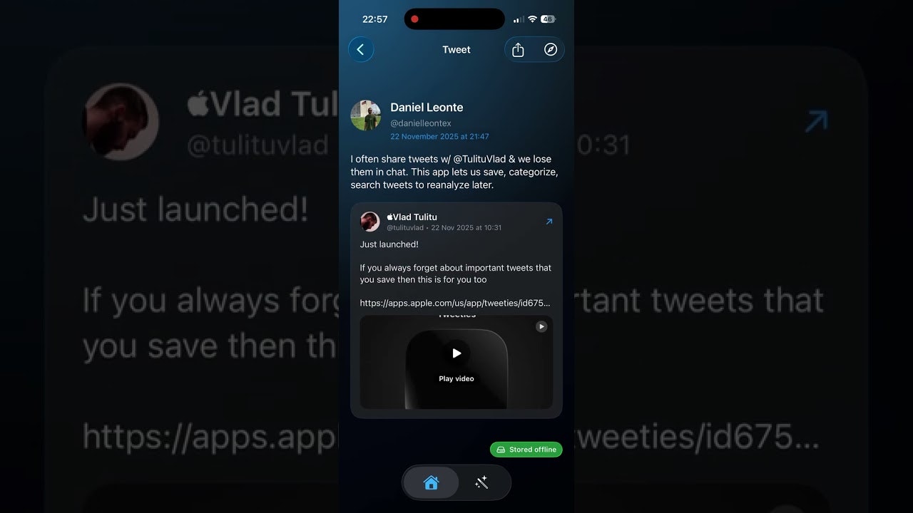 TweetiesはiPhone向けAI搭載ブックマーク管理アプリです。ワンタップでスレッドを保存し、オフライン閲覧・高度なAI検索で素早く参照。ツイートとXスレッドを永久保存。オフライン環境でも...