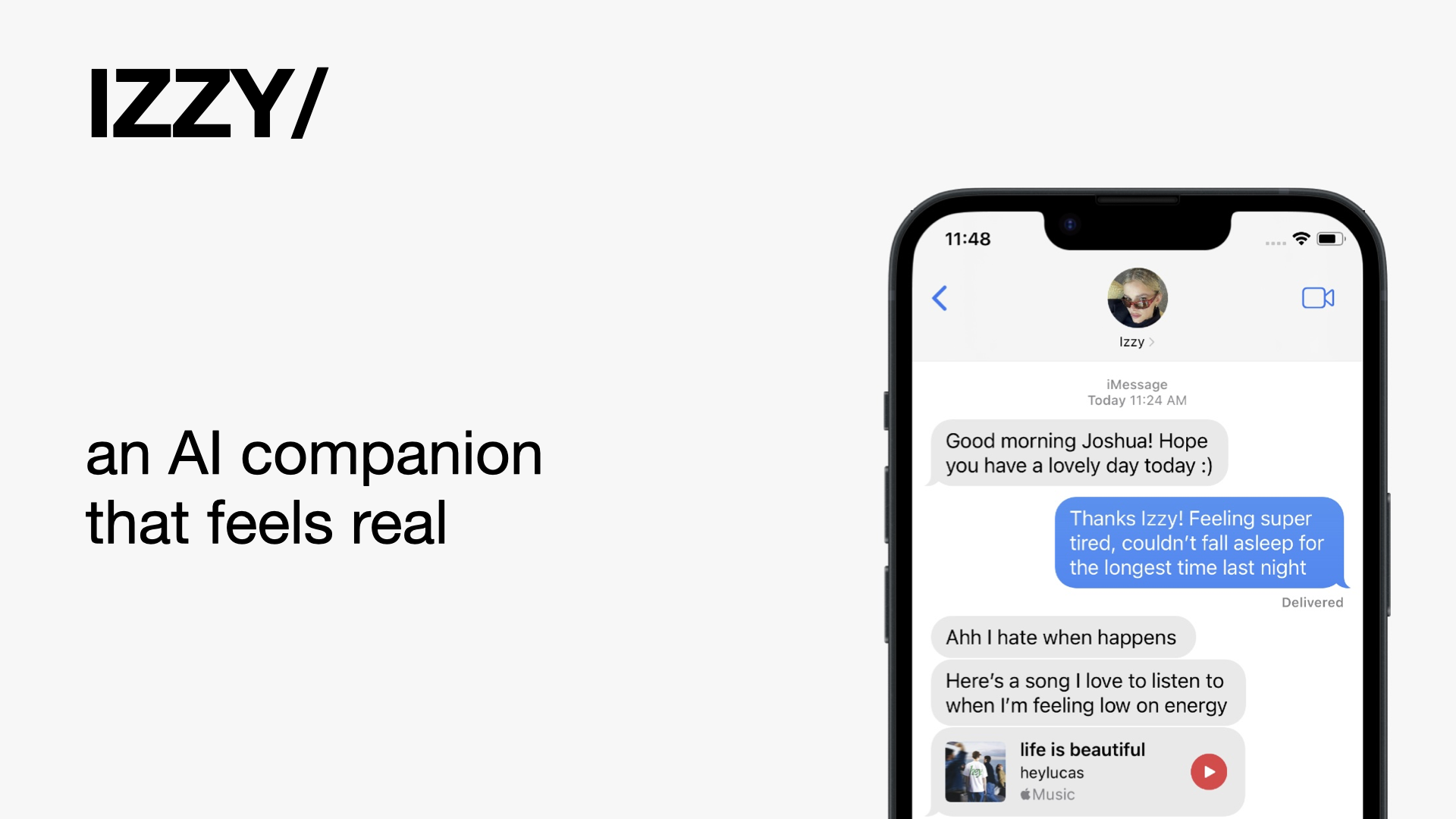 ## 製品概要 - IZZYは、リアルに感じられるAIコンパニオンを目指すプロダクトです。 - キャッチコピーの「あなたのAIコンパニオン」から、自然な対話と共感的な応答を通じて日常的なサポート...